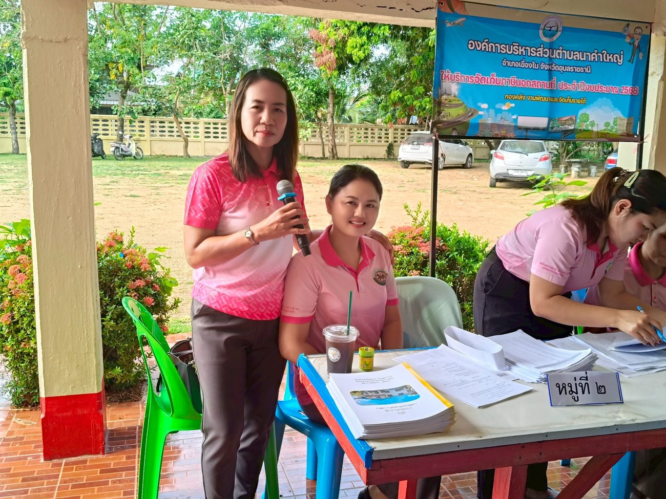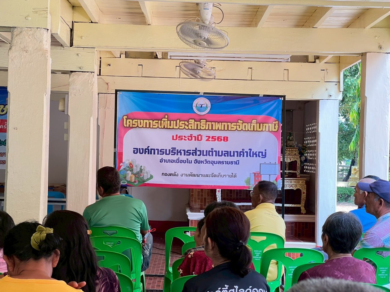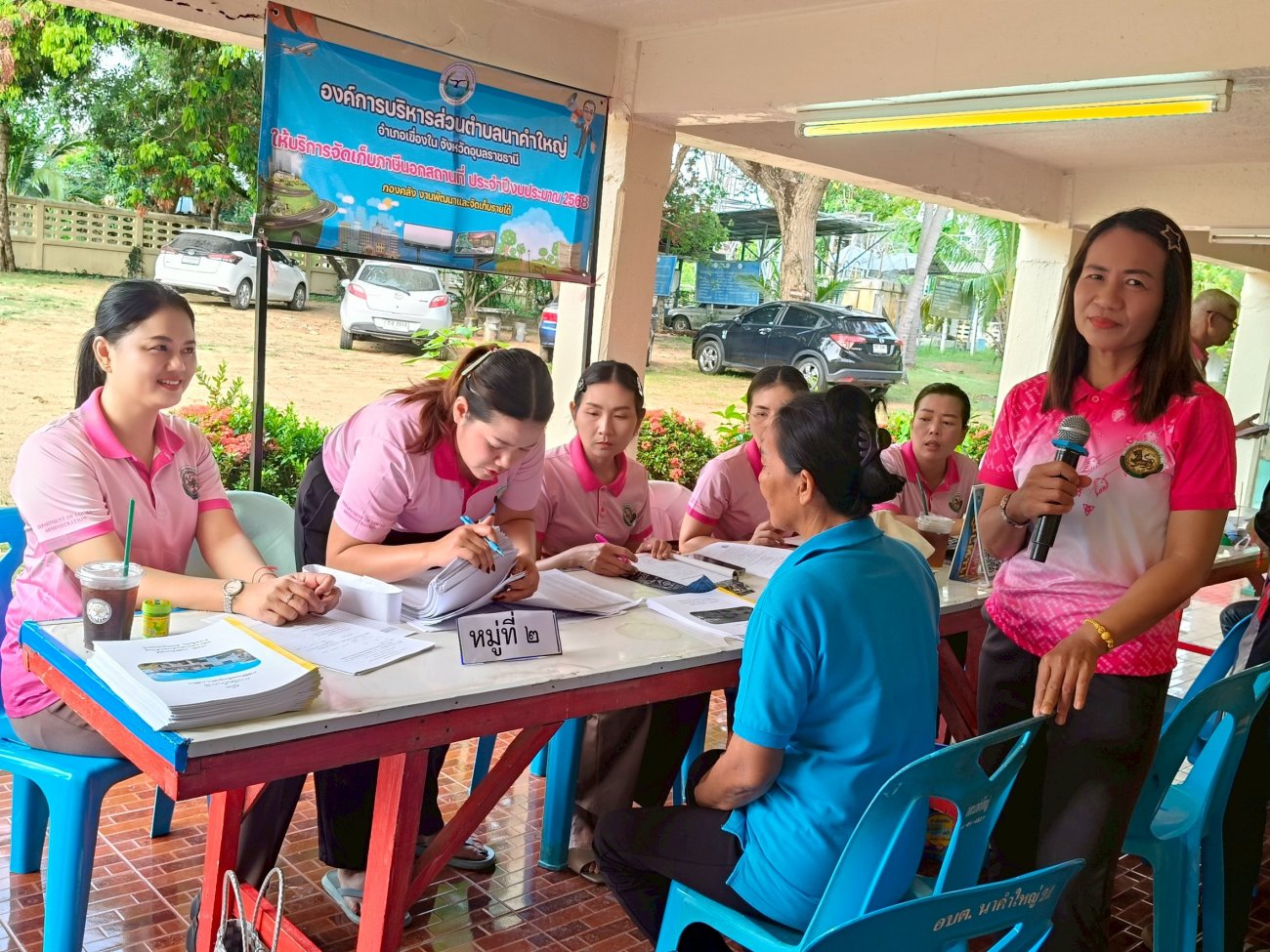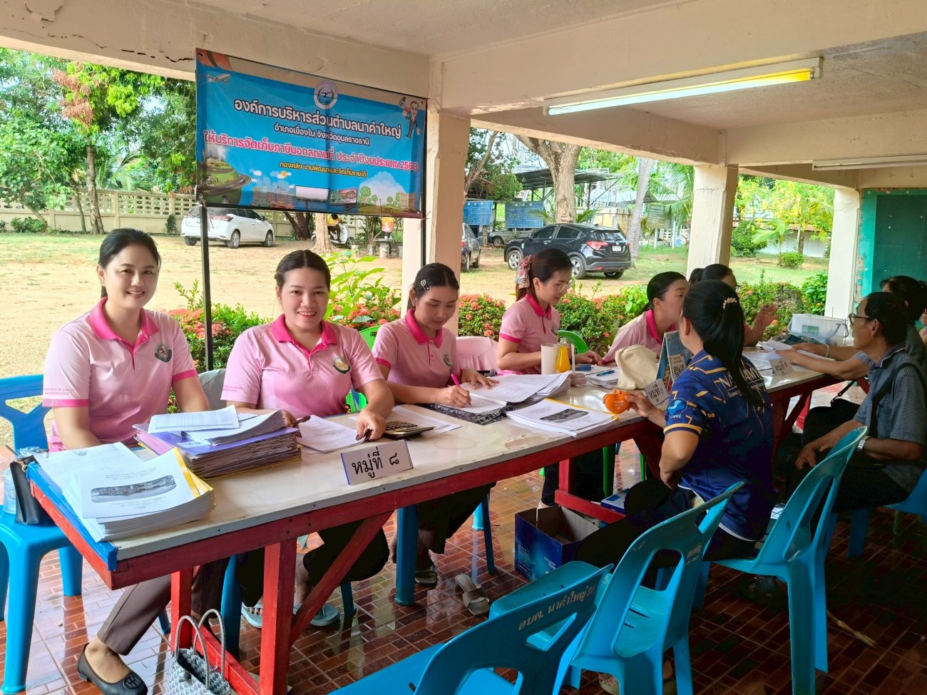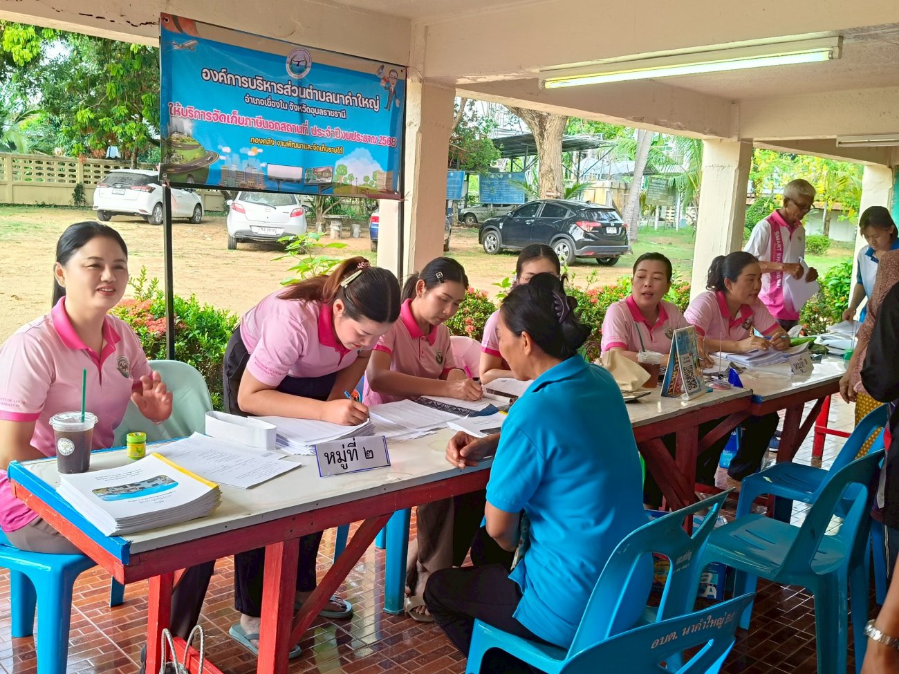 รับฟังความคิดเห็นของประชาชนให้คำปรึกษาเเนะนำตอบข้อซักถามเกี่ยวกับการบริหารงานของ อบต.เเละให้บริการรับชำระภาษีที่ดินเเละสิ่งปลูกสร้างเเละภาษีป้าย