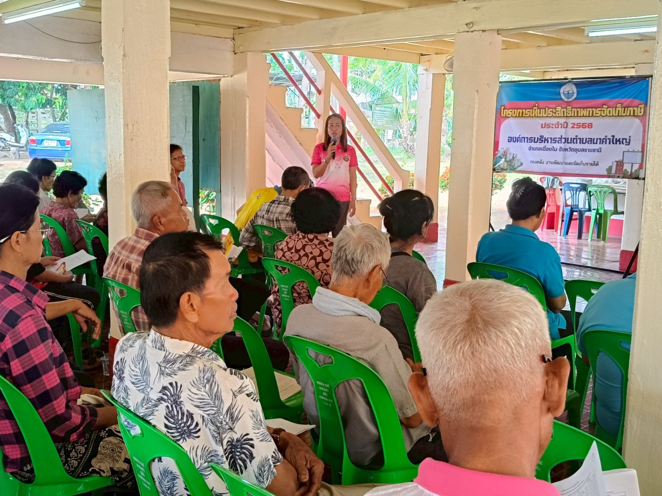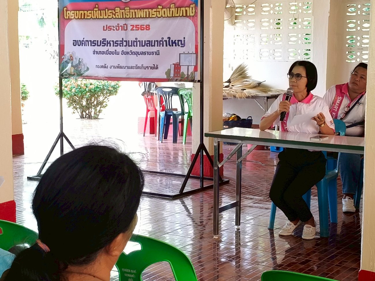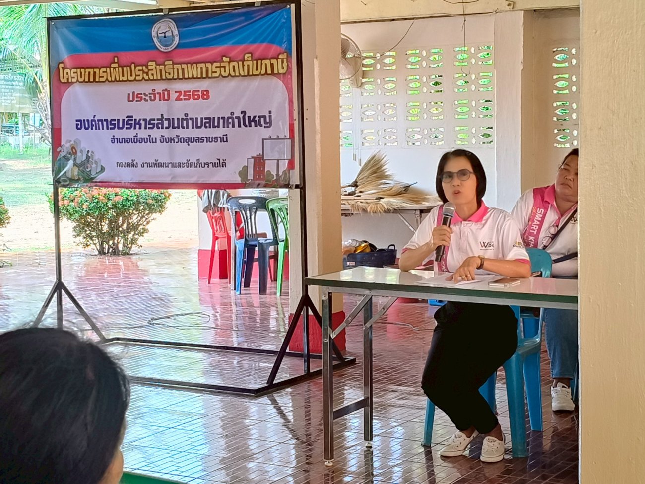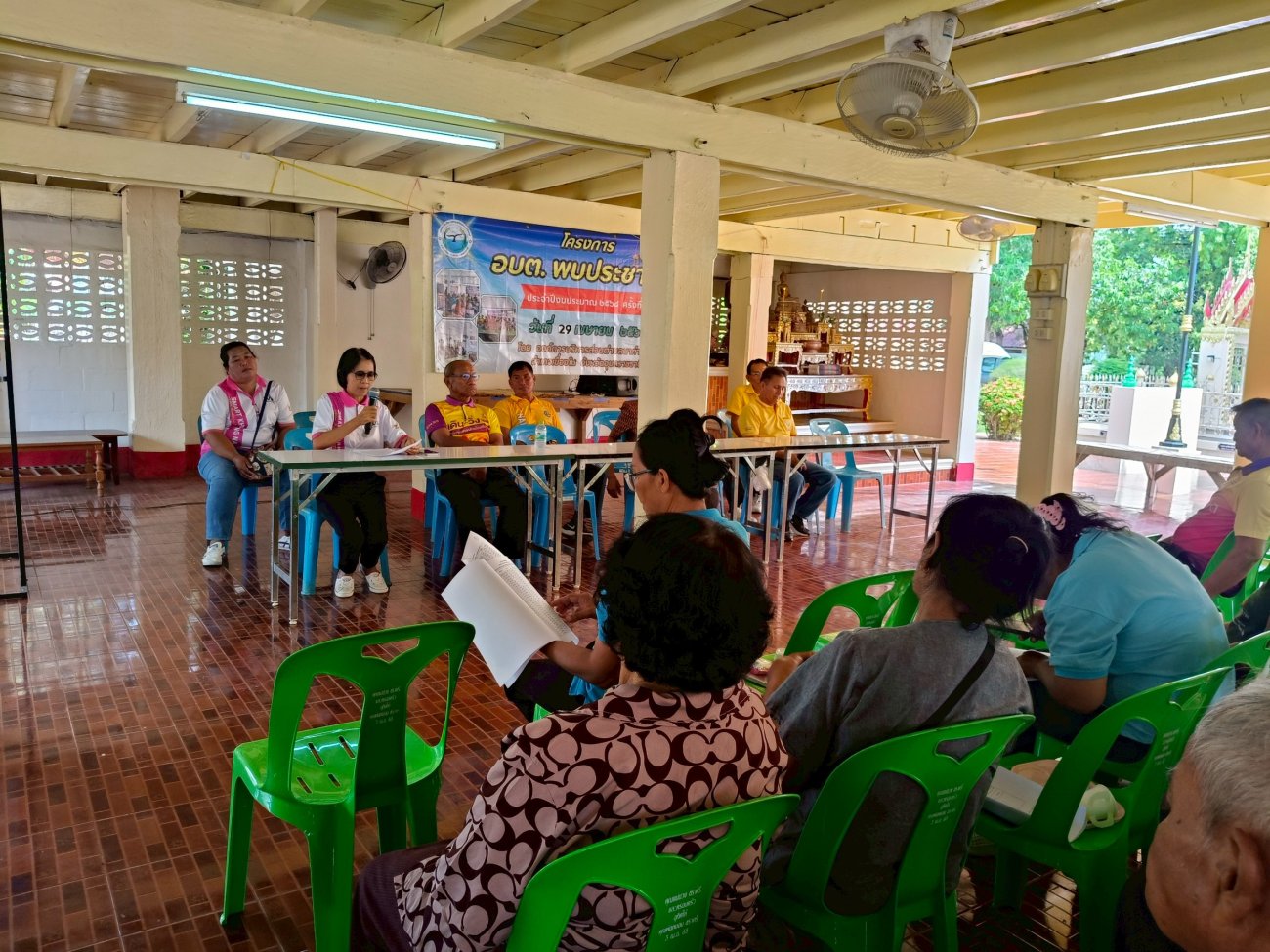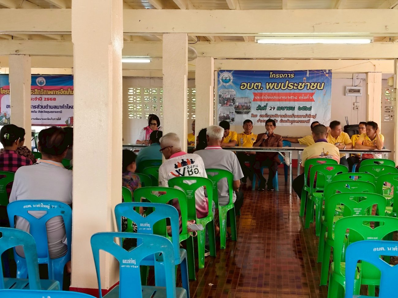 รับฟังความคิดเห็นของประชาชนให้คำปรึกษาเเนะนำตอบข้อซักถามเกี่ยวกับการบริหารงานของ อบต.เเละให้บริการรับชำระภาษีที่ดินเเละสิ่งปลูกสร้างเเละภาษีป้าย