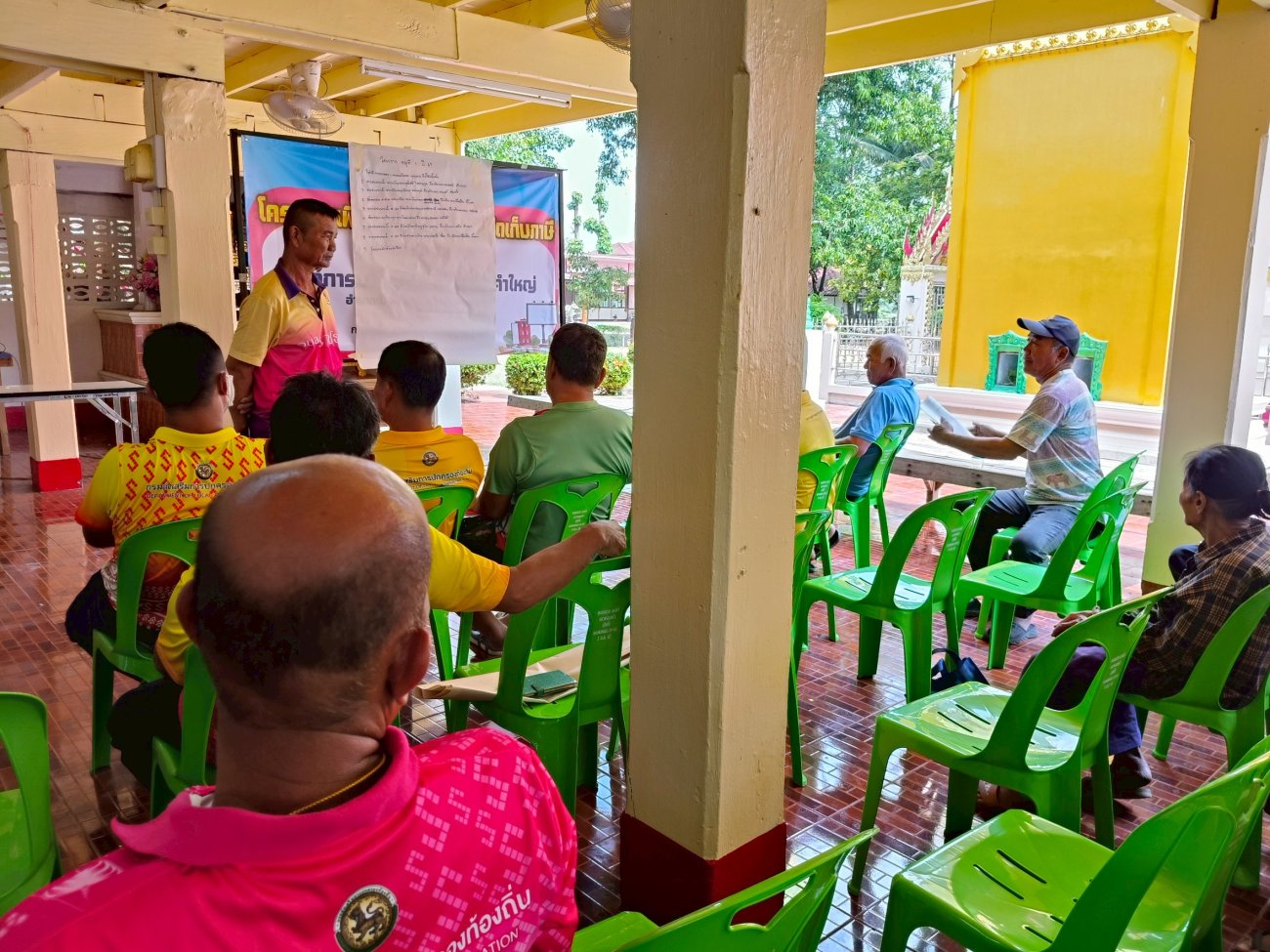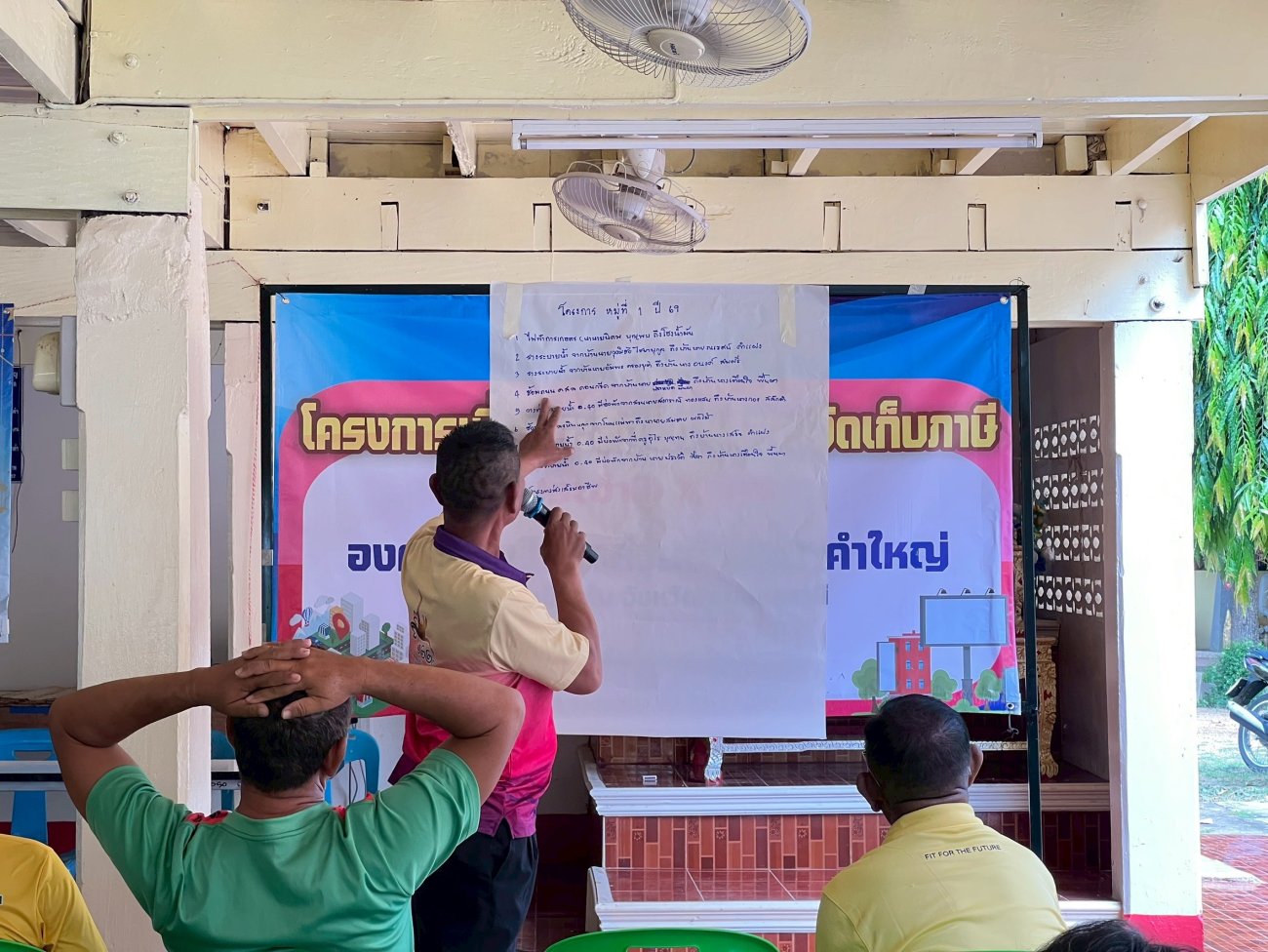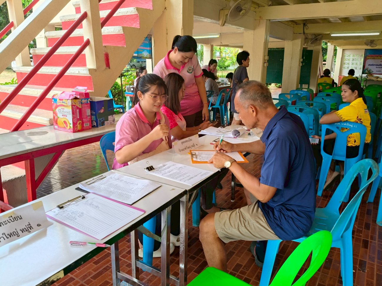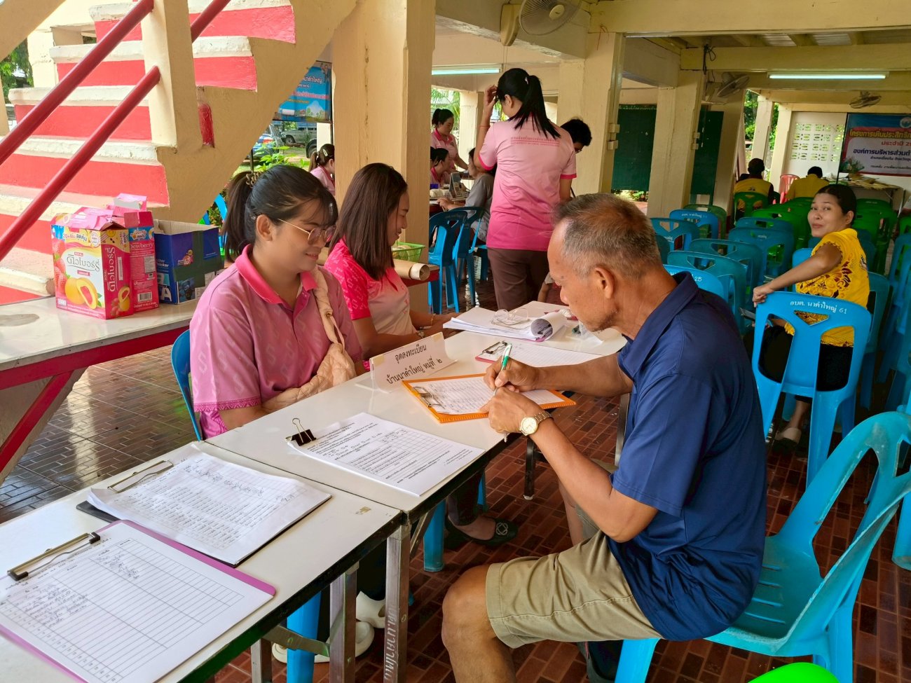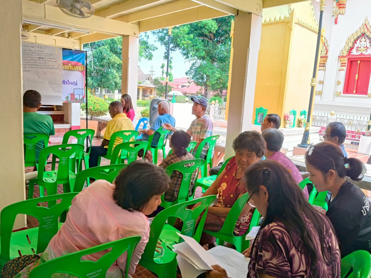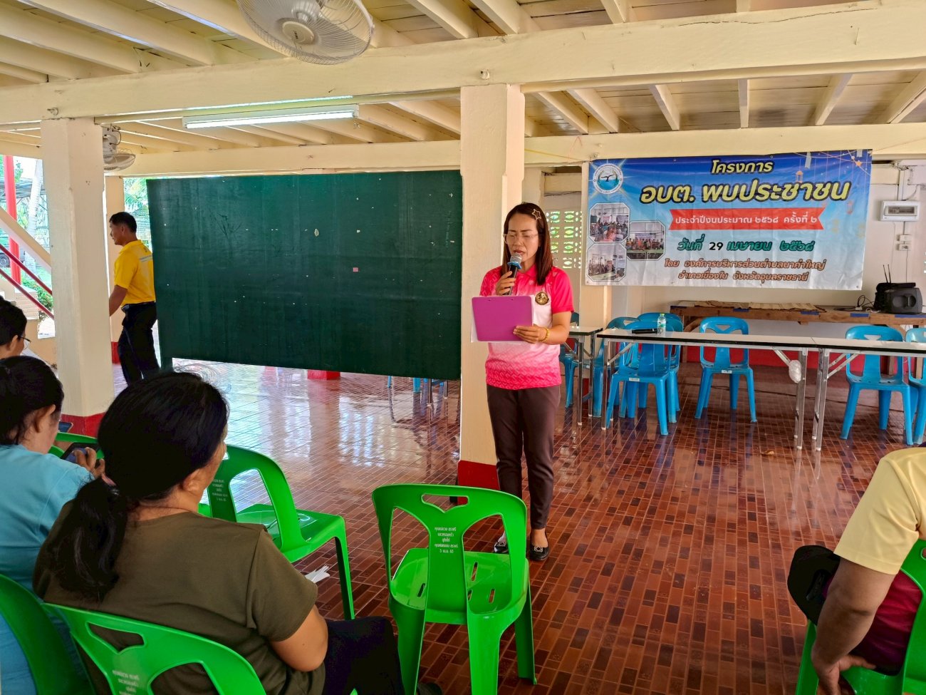 รับฟังความคิดเห็นของประชาชนให้คำปรึกษาเเนะนำตอบข้อซักถามเกี่ยวกับการบริหารงานของ อบต.เเละให้บริการรับชำระภาษีที่ดินเเละสิ่งปลูกสร้างเเละภาษีป้าย
