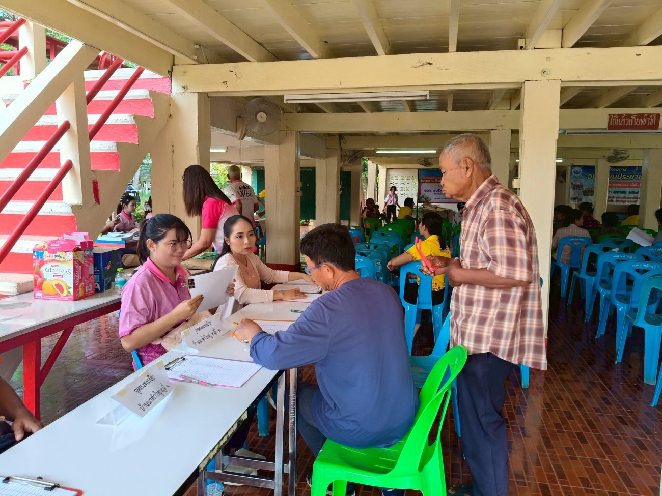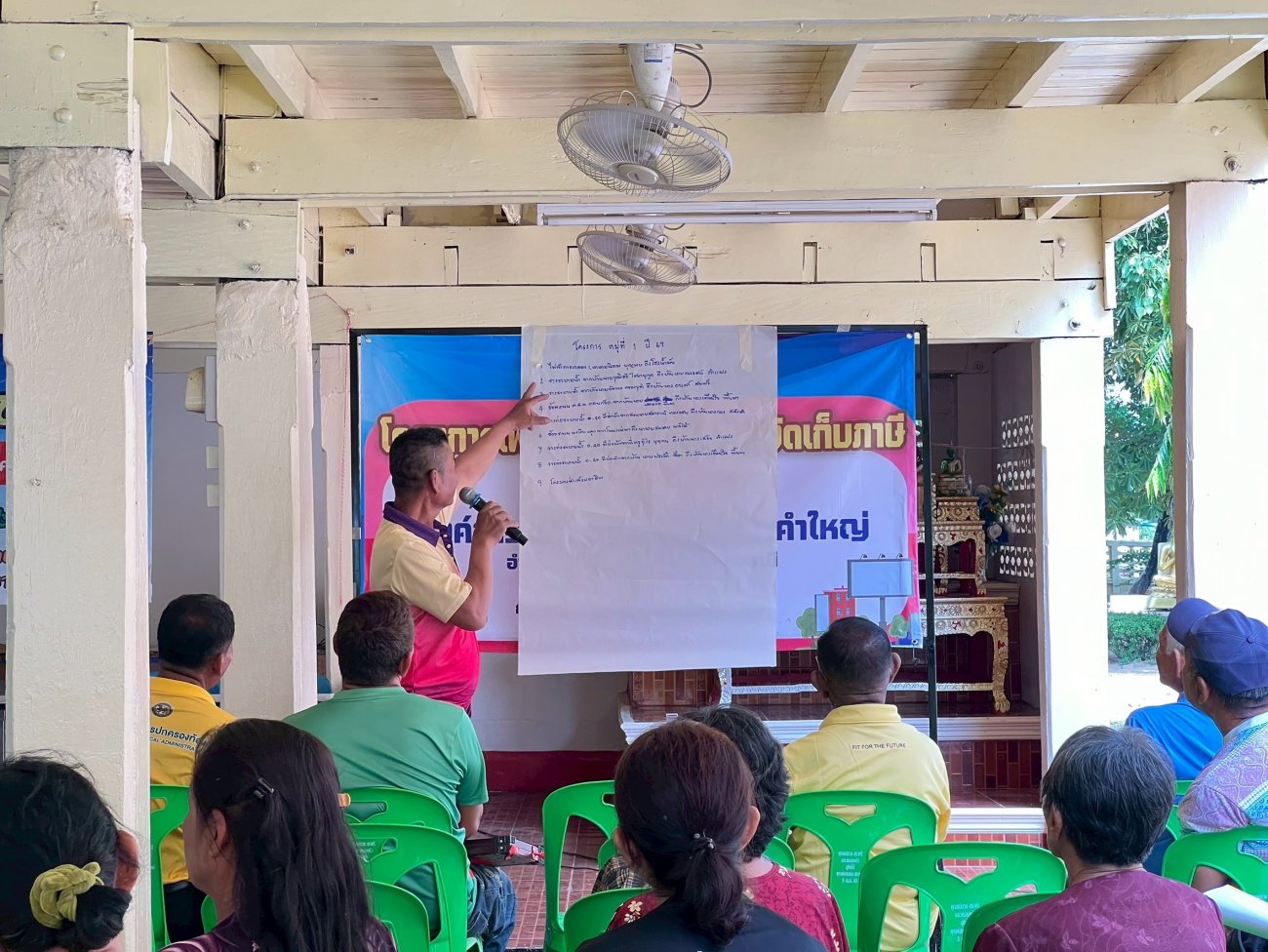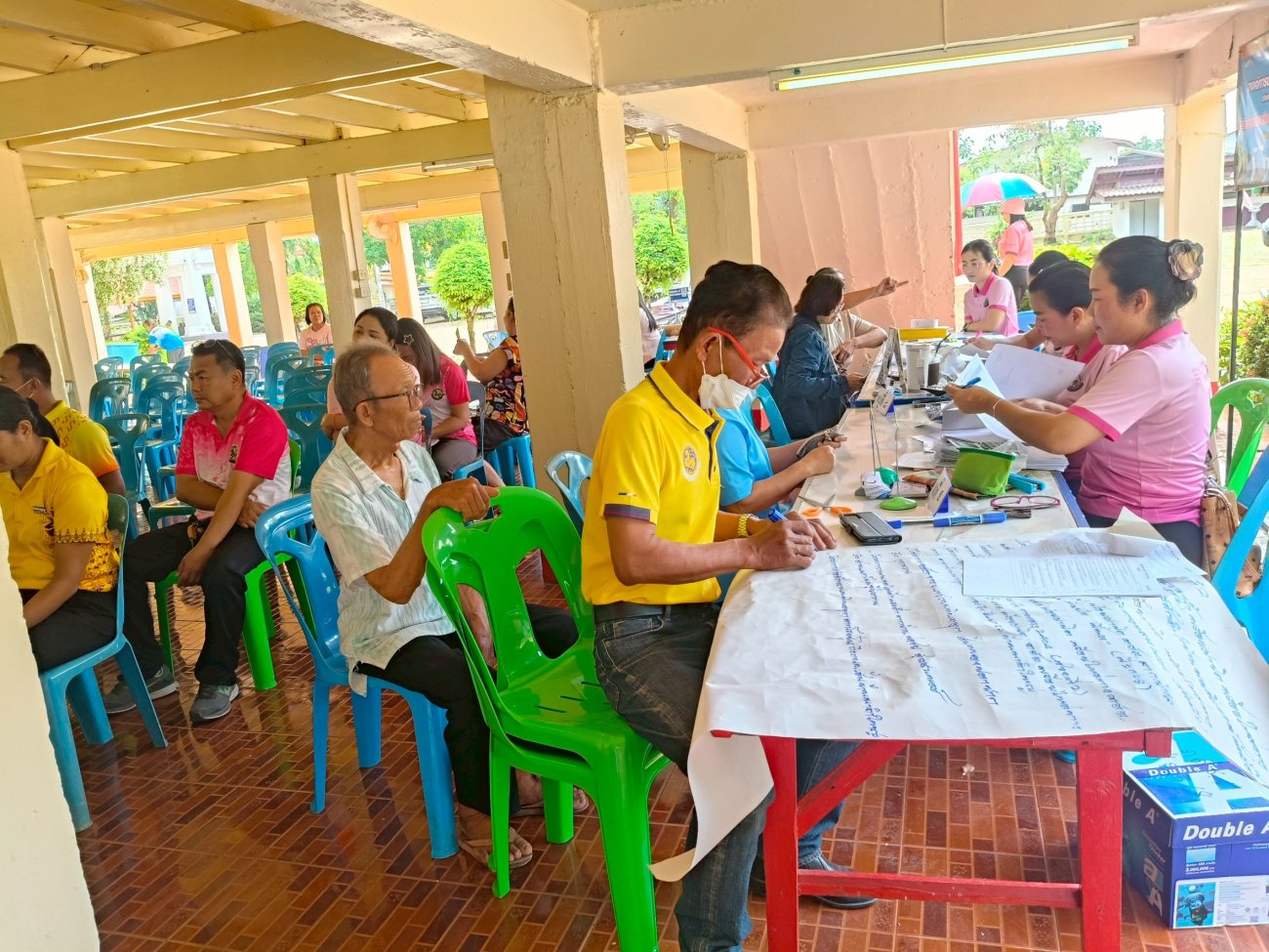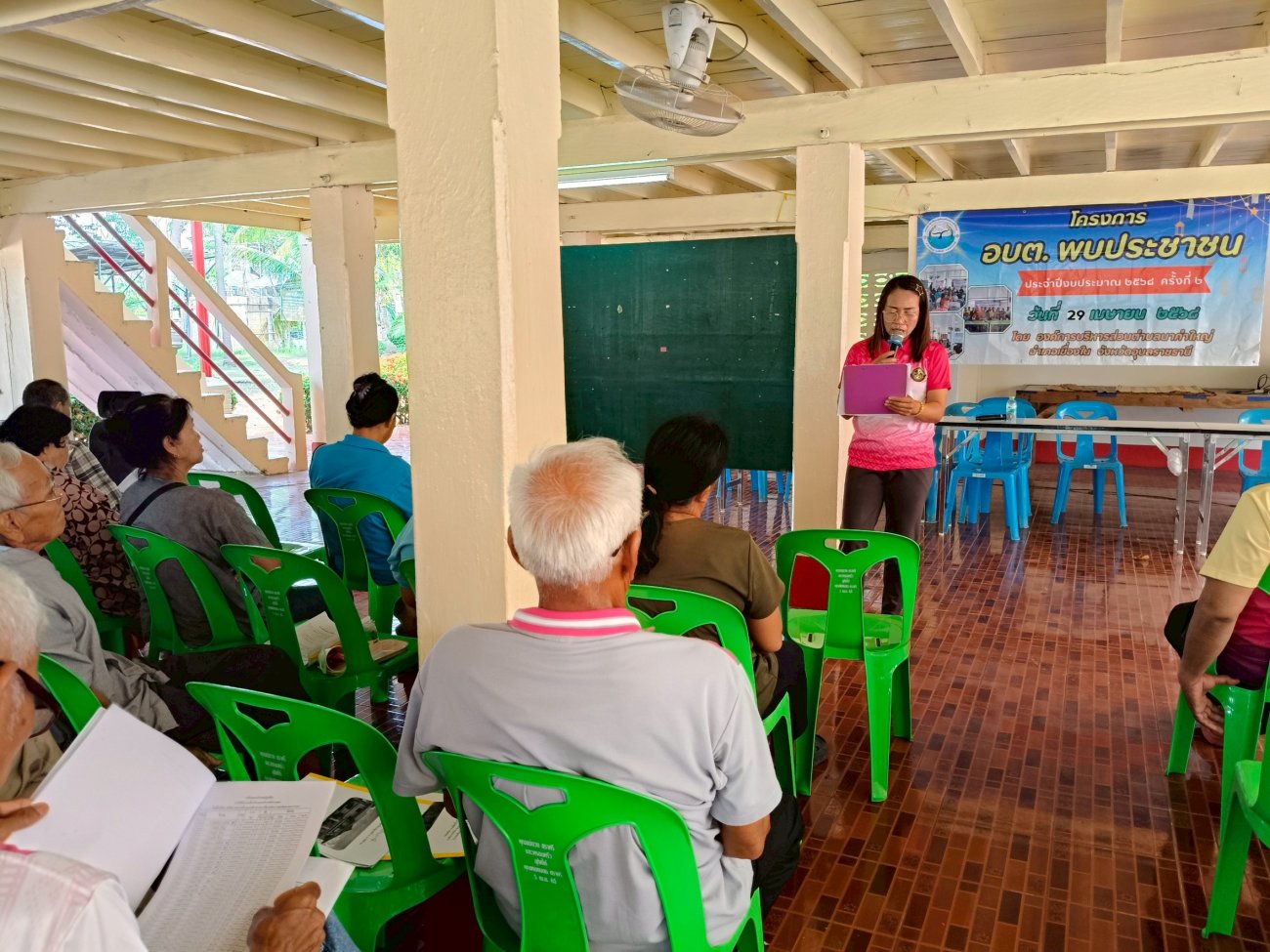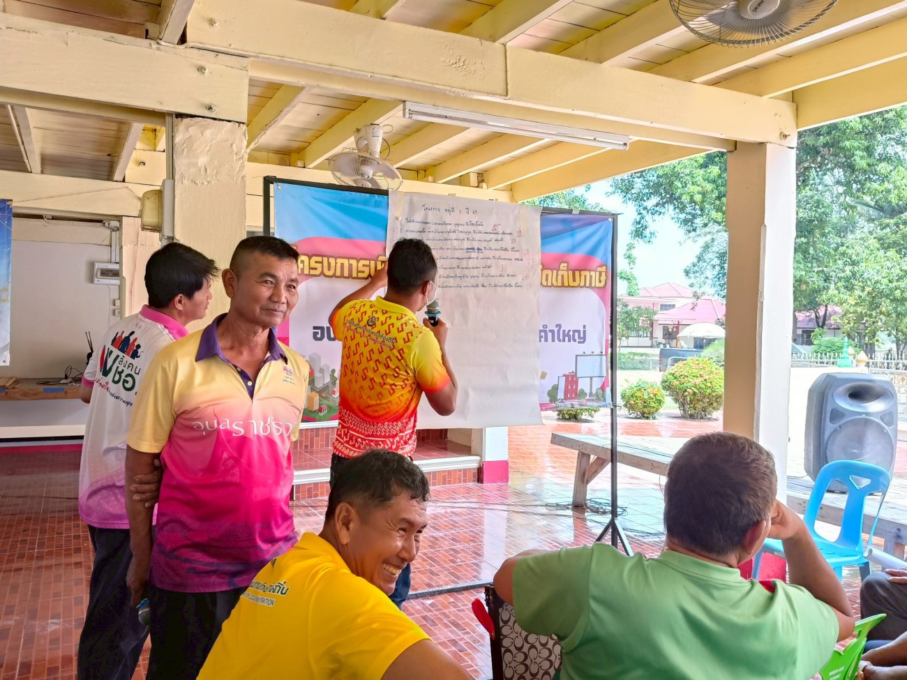 รับฟังความคิดเห็นของประชาชนให้คำปรึกษาเเนะนำตอบข้อซักถามเกี่ยวกับการบริหารงานของ อบต.เเละให้บริการรับชำระภาษีที่ดินเเละสิ่งปลูกสร้างเเละภาษีป้าย