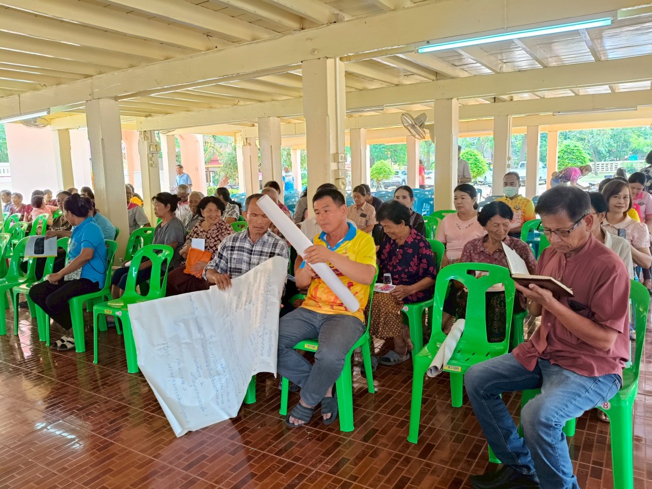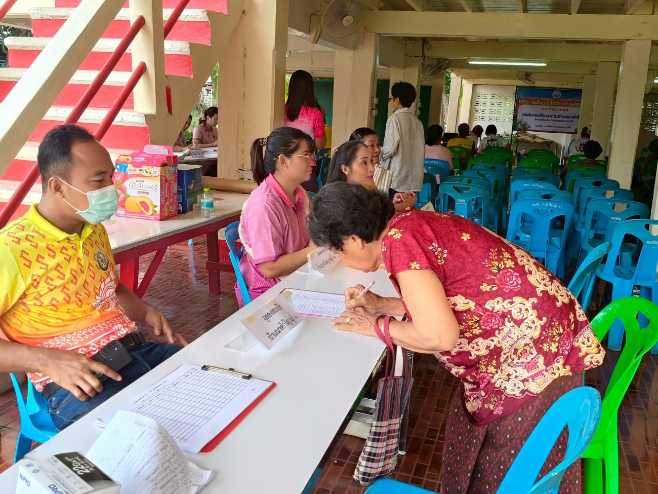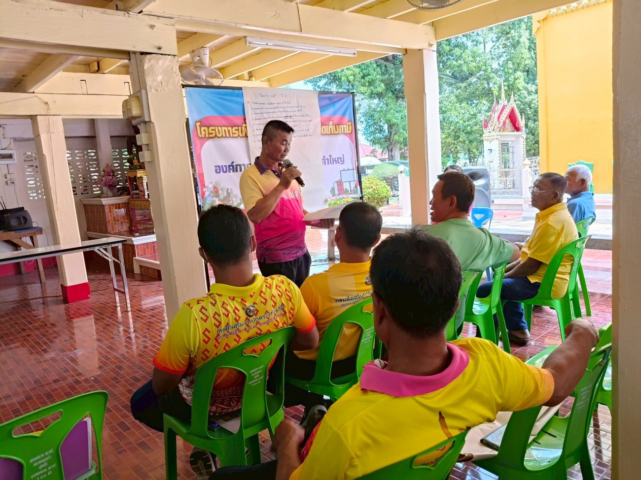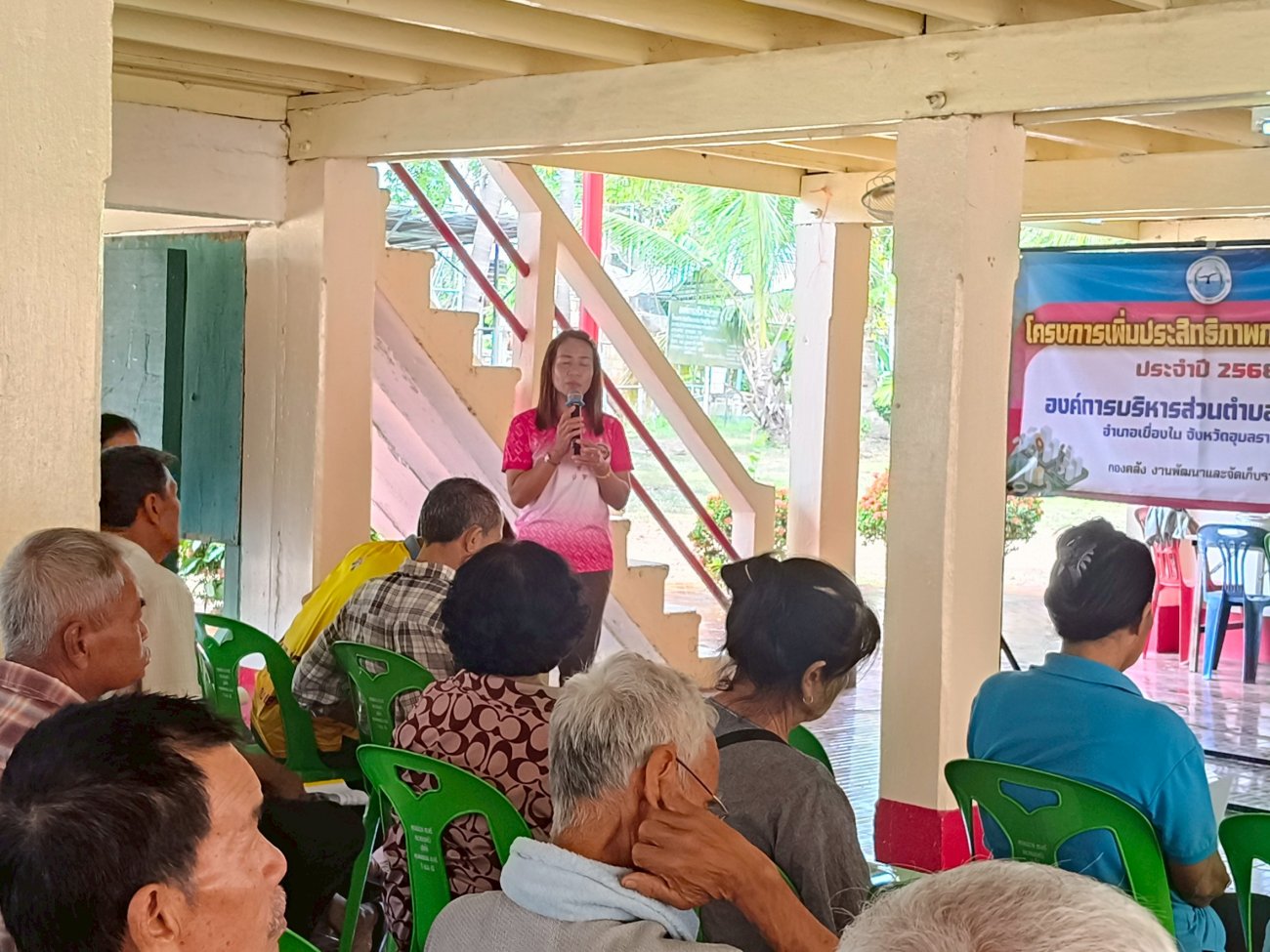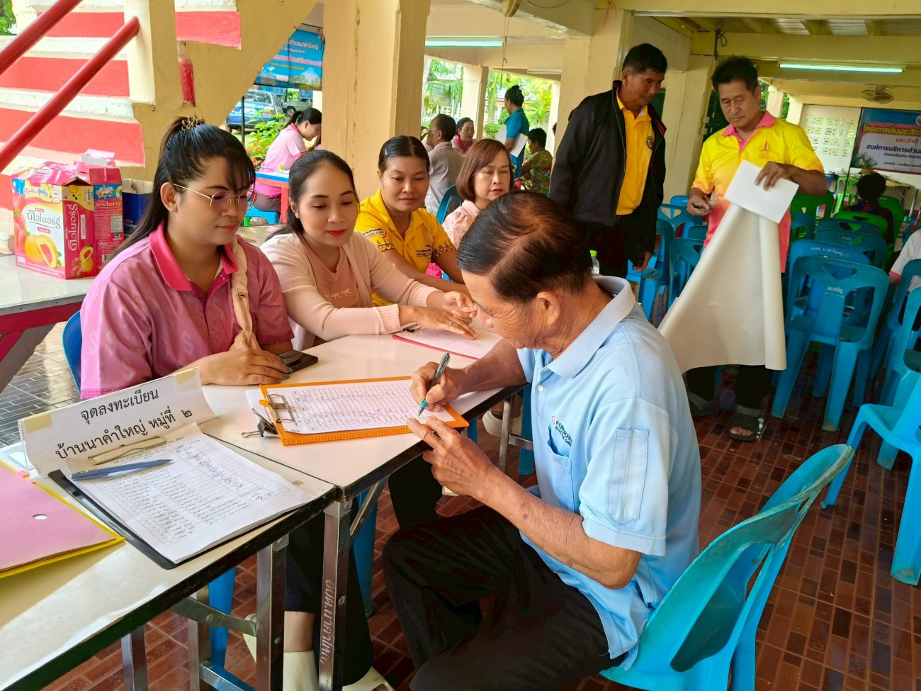 รับฟังความคิดเห็นของประชาชนให้คำปรึกษาเเนะนำตอบข้อซักถามเกี่ยวกับการบริหารงานของ อบต.เเละให้บริการรับชำระภาษีที่ดินเเละสิ่งปลูกสร้างเเละภาษีป้าย