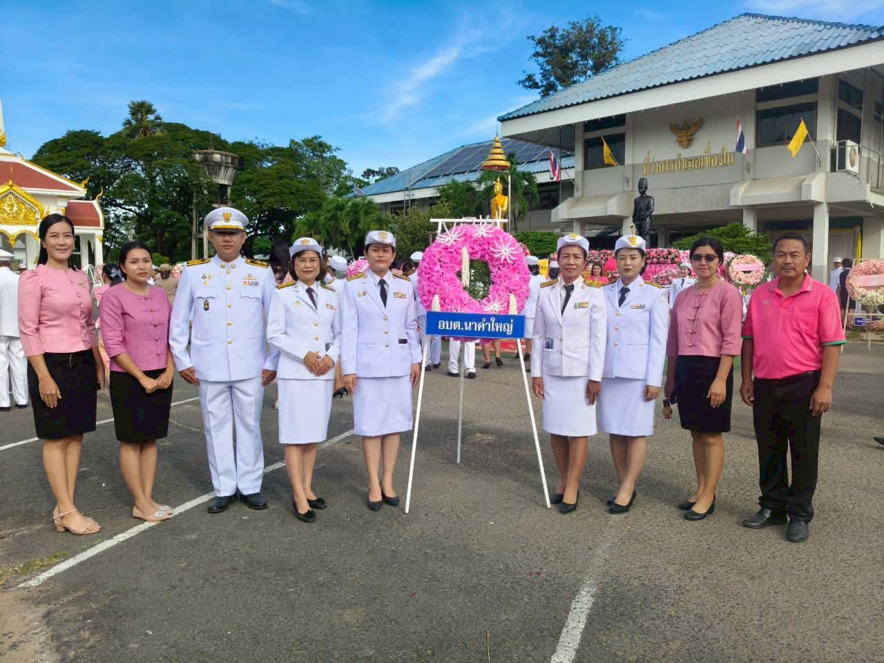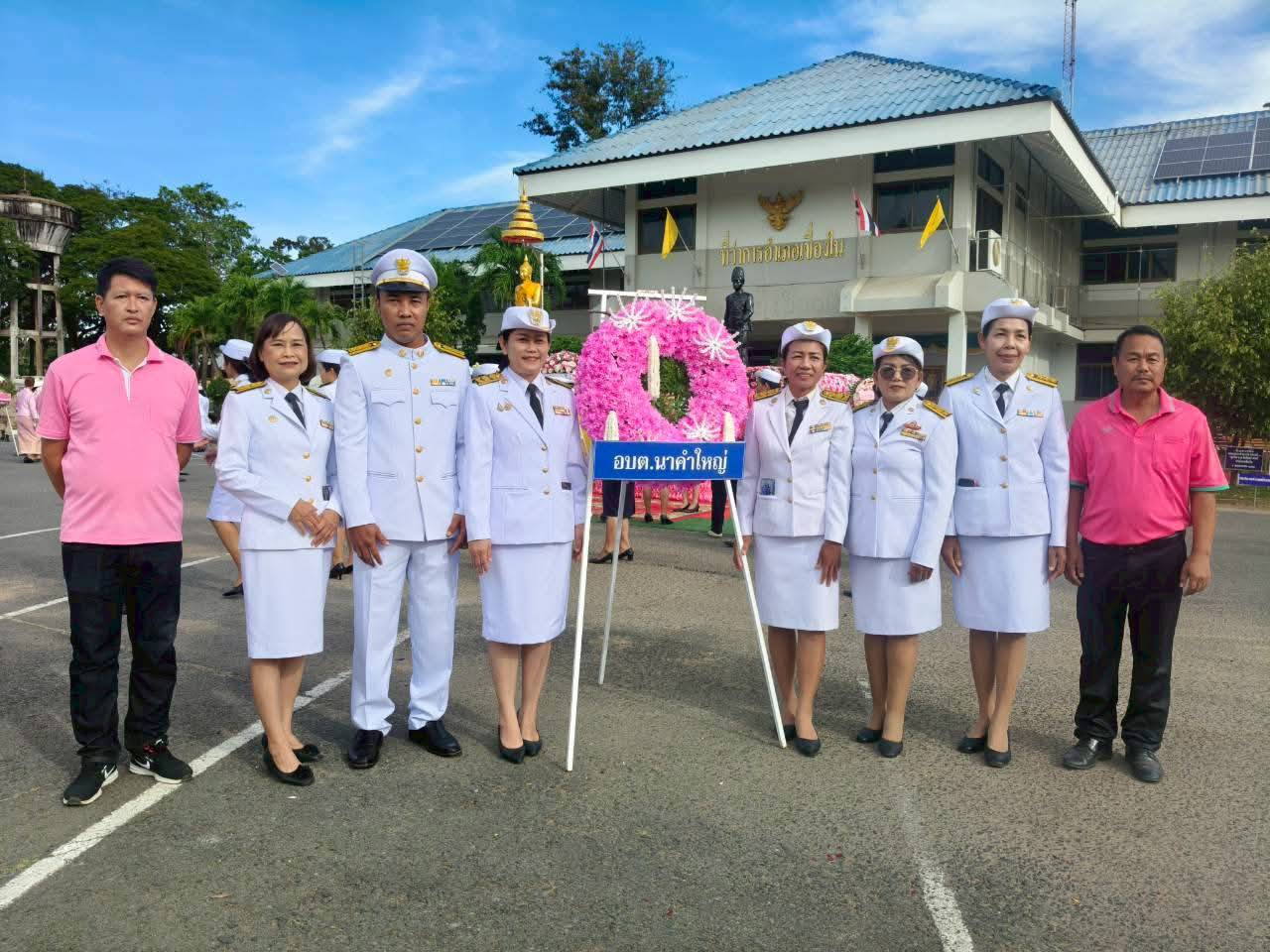 นายอำนวย สมศรี นายกองค์การบริหารส่วนตำบลนาคำใหญ่ พร้อมด้วย คณะผู้บริหาร นางสาวกฤติยาธรณ์ รีพล ปลัดอบต. ,หัวหน้าส่วนราชการ , พนักงาน ลูกจ้าง เข้าร่วมพิธีวางพวงมาลา เพื่อน้อมรำลึก เนื่องในวันคล้ายวันสวรรคพระบาทสมเด็จพระจุลจอมกล้าเจ้าอยู่หัว (วันปิยมหาราช) ๒๓ ตุลาคม ประจำปี ๒๕๖๘