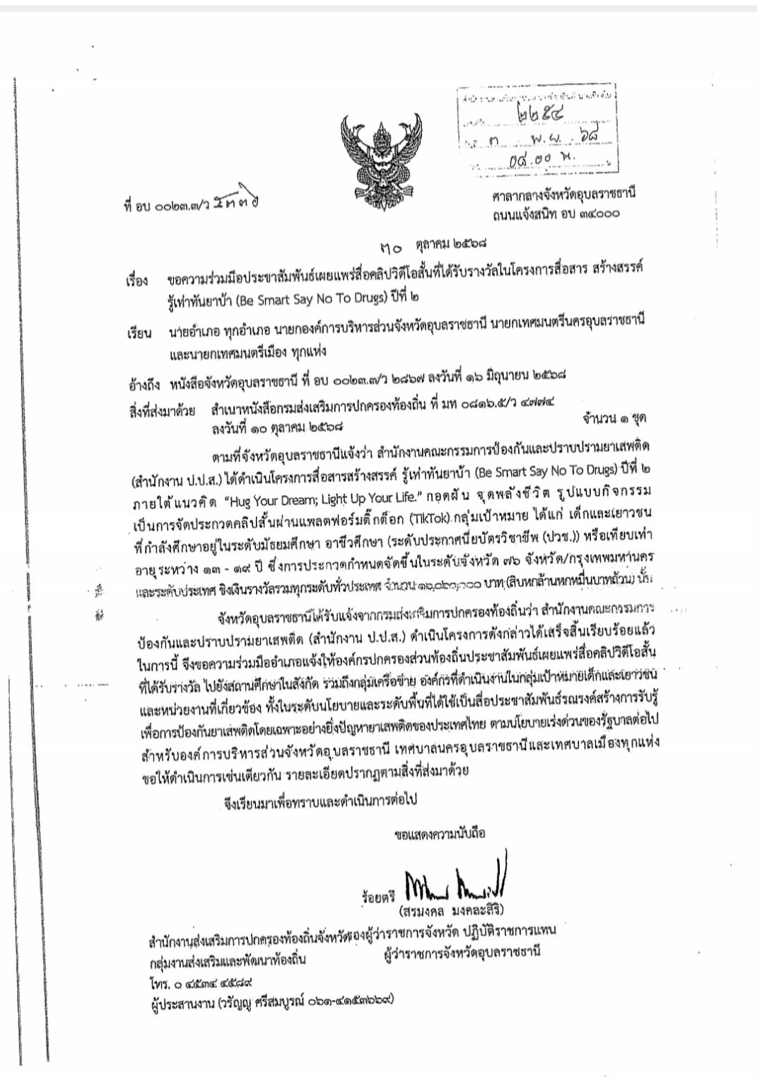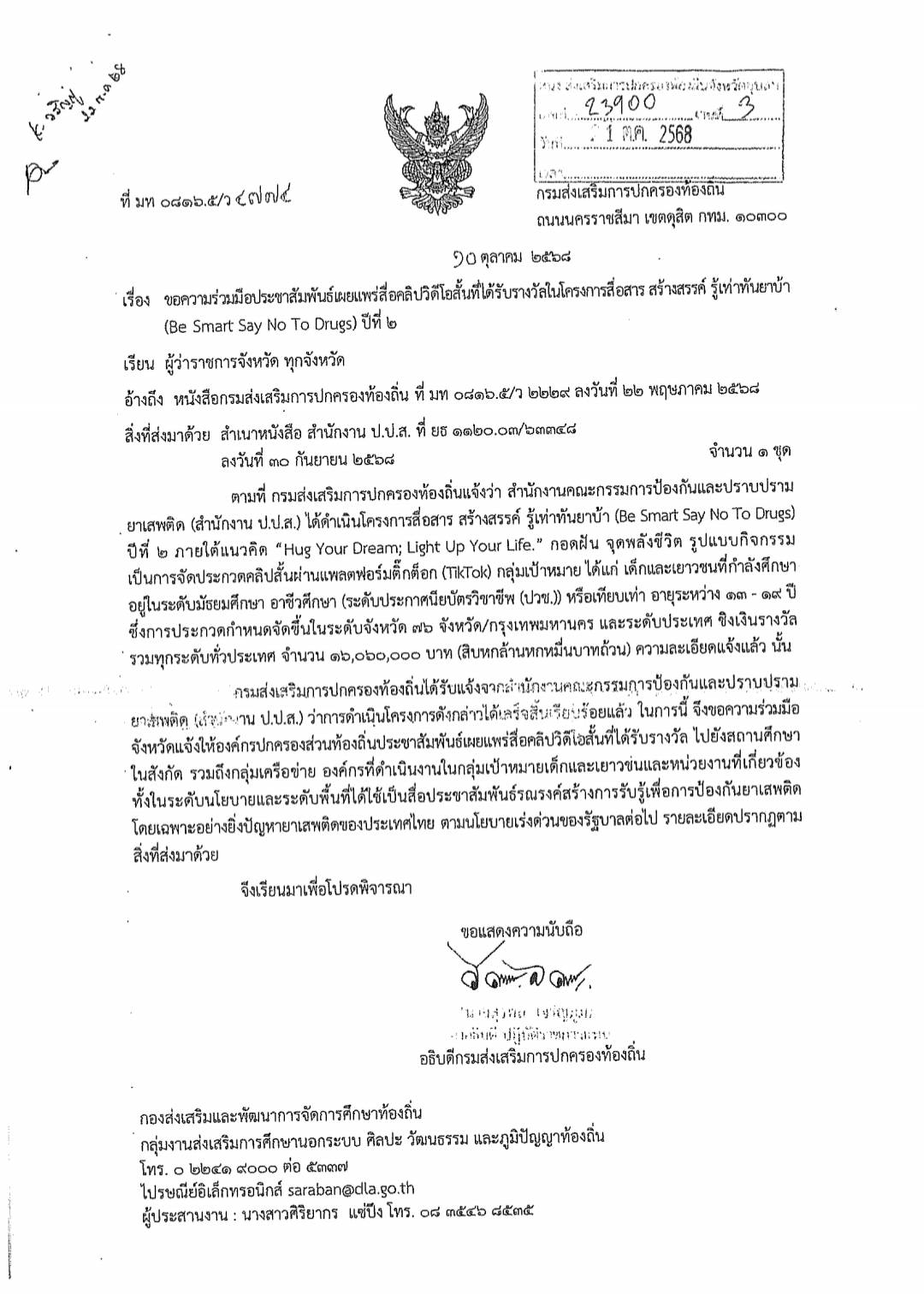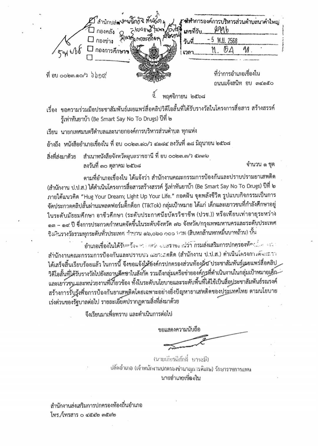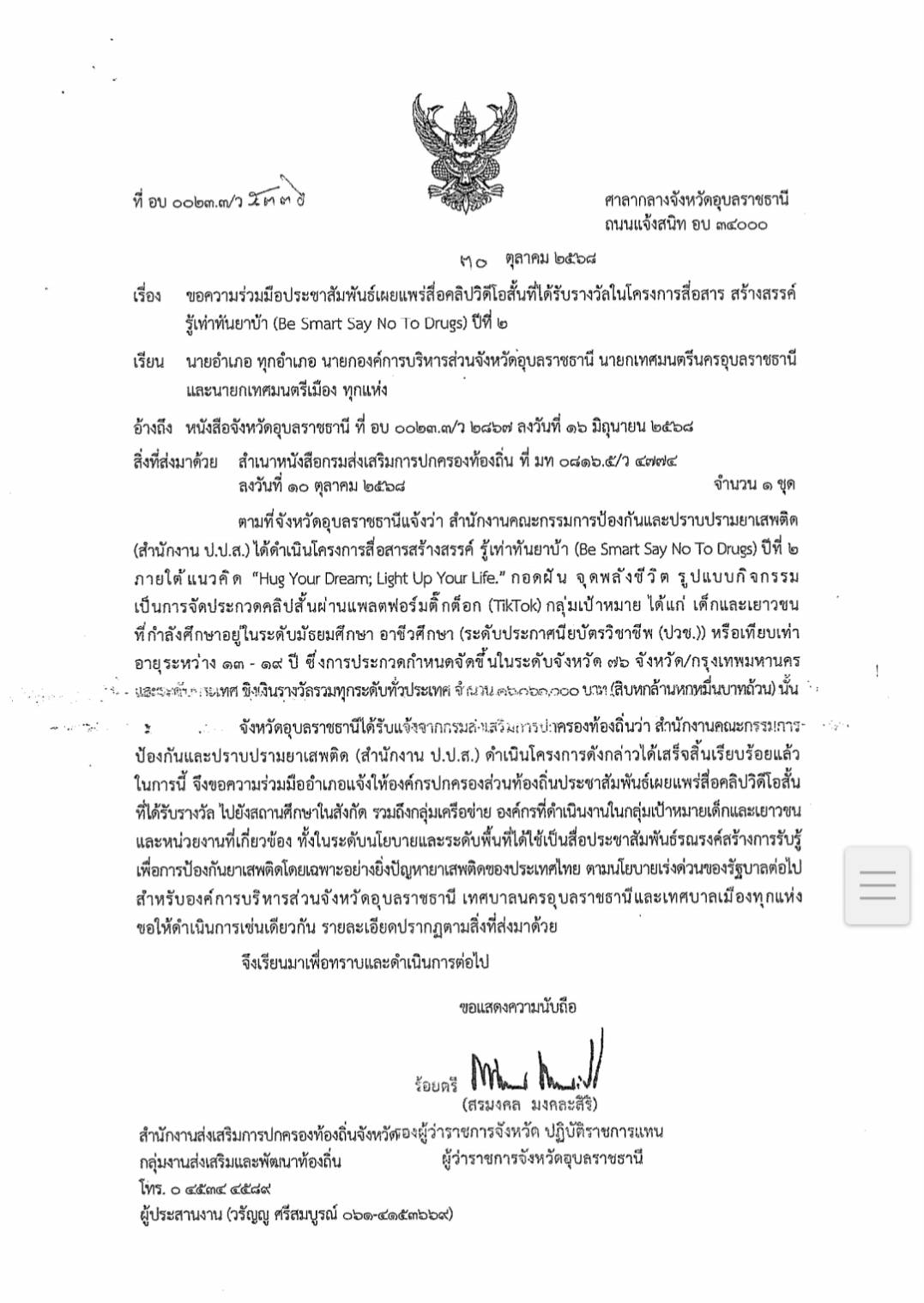 ภาพที่เกี่ยวข้อง ข่าวประชาสัมพันธ์องค์การบริหารส่วนตำบลนาคำใหญ่ เรื่อง ขอความร่วมมือประชาสัมพันธ์เผยเเพร่สื่อคลิปวิดีโอสั้นที่ได้รับรางวัลในโครงการสื่อสาร สร้างสรรค์ รู้เท่าทันยาบ้า(Be Smart Say No To Drugs) ปีที่ ๒