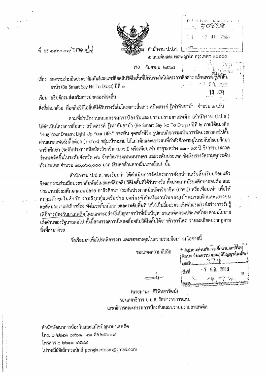 ข่าวประชาสัมพันธ์องค์การบริหารส่วนตำบลนาคำใหญ่ เรื่อง ขอความร่วมมือประชาสัมพันธ์เผยเเพร่สื่อคลิปวิดีโอสั้นที่ได้รับรางวัลในโครงการสื่อสาร สร้างสรรค์ รู้เท่าทันยาบ้า(Be Smart Say No To Drugs) ปีที่ ๒