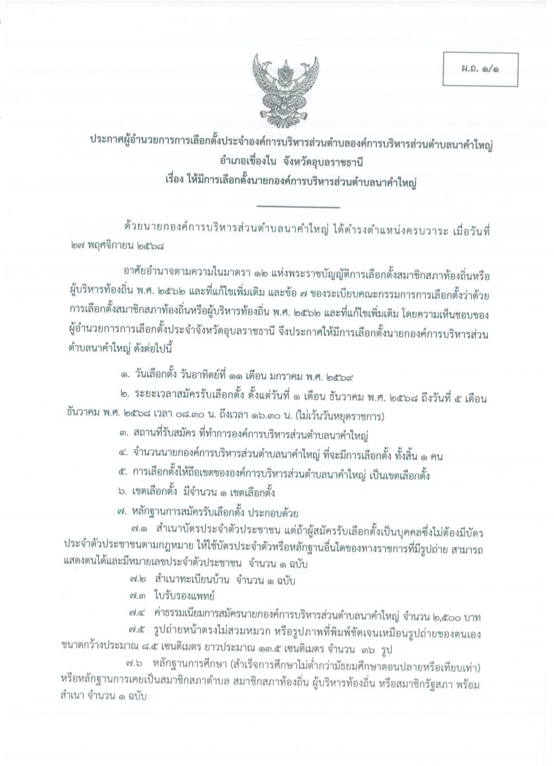 ภาพที่เกี่ยวข้อง ประกาศองค์การบริหารส่วนตำบลนาคำใหญ่ เรื่อง ให้มีการเลือกตั้งนายกองค์การบริหารส่วนตำบลนาคำใหญ่