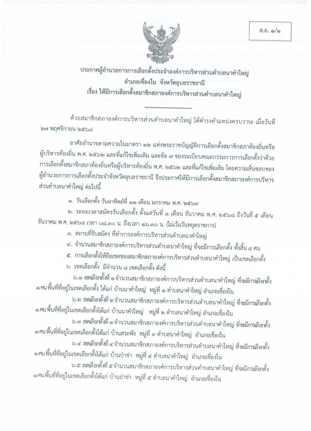 ภาพที่เกี่ยวข้อง ประกาศองค์การบริหารส่วนตำบลนาคำใหญ่ เรื่อง ให้มีการเลือกตั้งสมาชิกสภาองค์การบริหารส่วนตำบลนาคำใหญ่