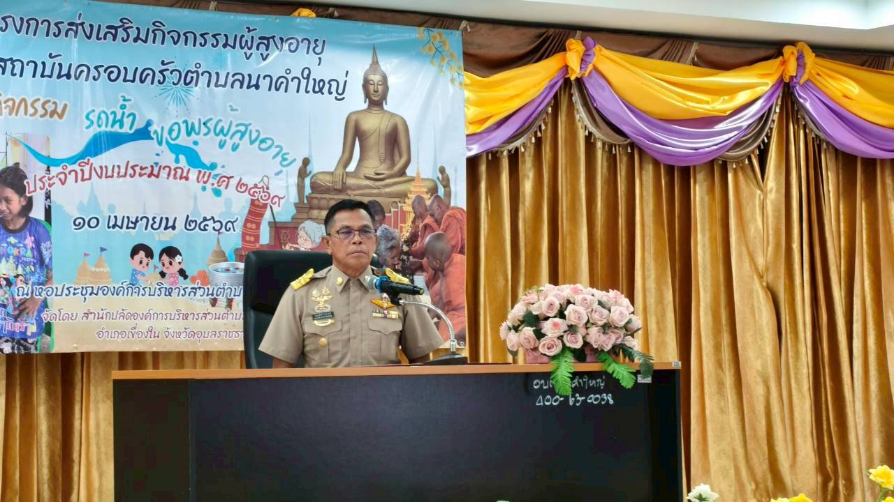 องค์การบริหารส่วนตำบลนาคำใหญ่ ได้ดำเนินจัดโครงการส่งเสริมกิจกรรมผู้สูงอายุเเละสถาบันครอบครัวตำบลนาคำใหญ่ (กิจกรรมรดน้ำ ขอพรผู้สูงอายุ) ประจำปีงบประมาณ พ.ศ.2569 โดยมี ร้อยตรีส่งสูงศักดิ์ หงษาวงศ์ นายกองค์การบริหารส่วนตำบลนาคำใหญ่ เป็นประธานในพิธี นางสาวกฤติยาธรณ์ รีพล ปลัดอบต. ผู้กล่าวรายงาน พร้อมด้วย คณะผู้บริหาร , สมาชิสภา , หัวหน้าส่วนราชการ , พนักงานอบต. โดยโครงการนี้จัดขึ้น เพื่อส่งเสริมอนุรักษ์สืบทอดประเพณีเเละวัฒนธรรมอันดีงามของไทย ส่งเสริมการเเสดงความกตัญญูต่อผู้อาวุโส เเละผู้สูงอายุ ยกย่องเชิดชูเกียรติ ผู้สูงอายุ ส่งเสริมให้ผู้สูงอายุเเสดงความสามารถ และเป็นการสร้างความรักสามัคคีของคนในชุมชน การเล่นน้ำสงกรานต์ บรรยากาศเป็นไปด้วยความสุข สนุกสนาน