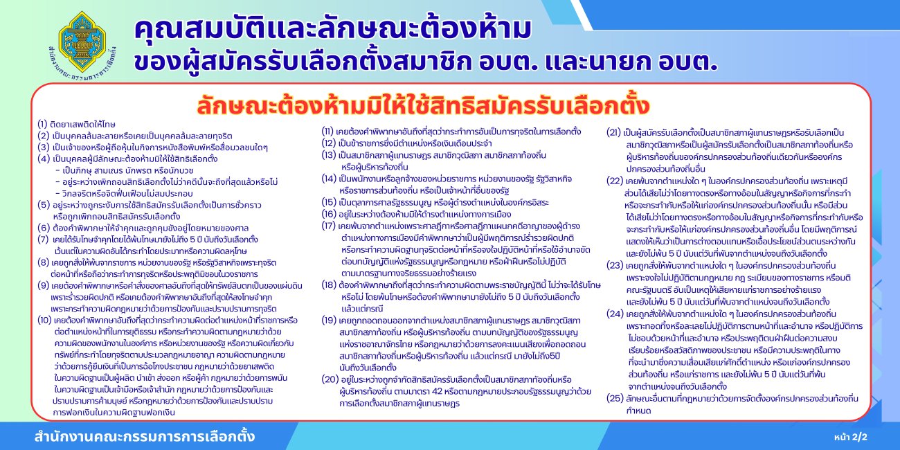 ภาพที่เกี่ยวข้อง ข่าวประชาสัมพันธ์องค์การบริหารส่วนตำบลนาคำใหญ่ เรื่อง คุณสมบัติเเละลักษณะต้องห้ามของผู้สมัครรับเลือกตั้งสมาชิก อบต. เเละ นายก อบต.
