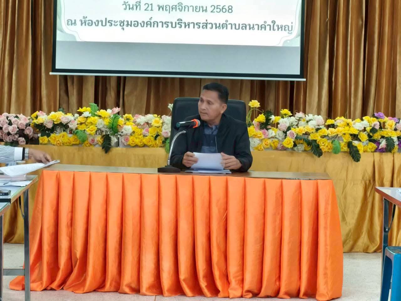 นายอำนวย สมศรี นายกองค์การบริหารส่วนตำบลนาคำใหญ่ มอบหมายให้ นายสุวรรณ ทองสุ รองนายกองค์การบริหารส่วนตำบลนาคำใหญ่ เป็นประธานในการประชุมคณะกรรมการกองทุนหลักประกันสุขภาพตำบลนาคำใหญ่ ครั้งที่ ๑ ประจำปีงบประมาณ ๒๕๖๙ พร้อมด้วยสำนักปลัด ท้องถิ่นอำเภอ ผู้อำนวยการโรงพยาบาลส่งเสริมสุขภาพตำบลเเละเจ้าหน้าที่ที่เกี่ยวข้อง เข้าร่วมประชุมในครั้งนี้