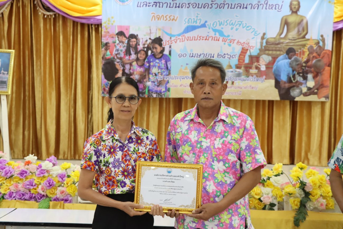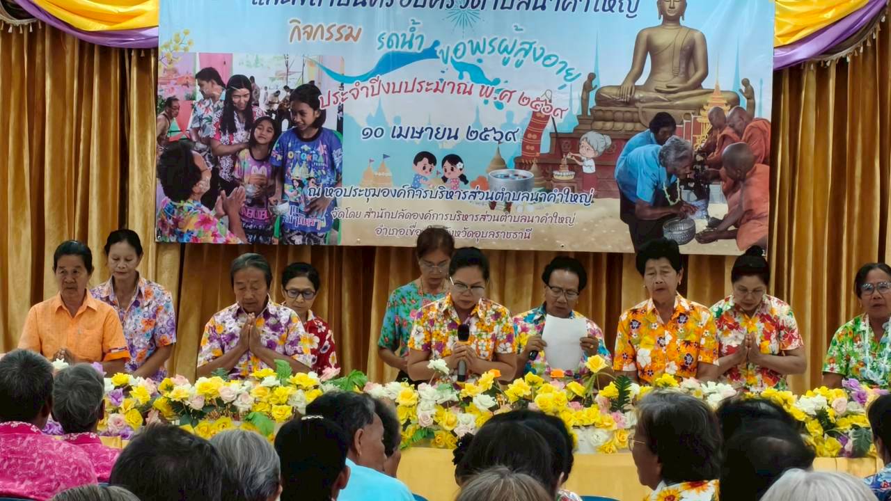 องค์การบริหารส่วนตำบลนาคำใหญ่ ได้ดำเนินจัดโครงการส่งเสริมกิจกรรมผู้สูงอายุเเละสถาบันครอบครัวตำบลนาคำใหญ่ (กิจกรรมรดน้ำ ขอพรผู้สูงอายุ) ประจำปีงบประมาณ พ.ศ.2569 โดยมี ร้อยตรีส่งสูงศักดิ์ หงษาวงศ์ นายกองค์การบริหารส่วนตำบลนาคำใหญ่ เป็นประธานในพิธี นางสาวกฤติยาธรณ์ รีพล ปลัดอบต. ผู้กล่าวรายงาน พร้อมด้วย คณะผู้บริหาร , สมาชิสภา , หัวหน้าส่วนราชการ , พนักงานอบต. โดยโครงการนี้จัดขึ้น เพื่อส่งเสริมอนุรักษ์สืบทอดประเพณีเเละวัฒนธรรมอันดีงามของไทย ส่งเสริมการเเสดงความกตัญญูต่อผู้อาวุโส เเละผู้สูงอายุ ยกย่องเชิดชูเกียรติ ผู้สูงอายุ ส่งเสริมให้ผู้สูงอายุเเสดงความสามารถ และเป็นการสร้างความรักสามัคคีของคนในชุมชน การเล่นน้ำสงกรานต์ บรรยากาศเป็นไปด้วยความสุข สนุกสนาน